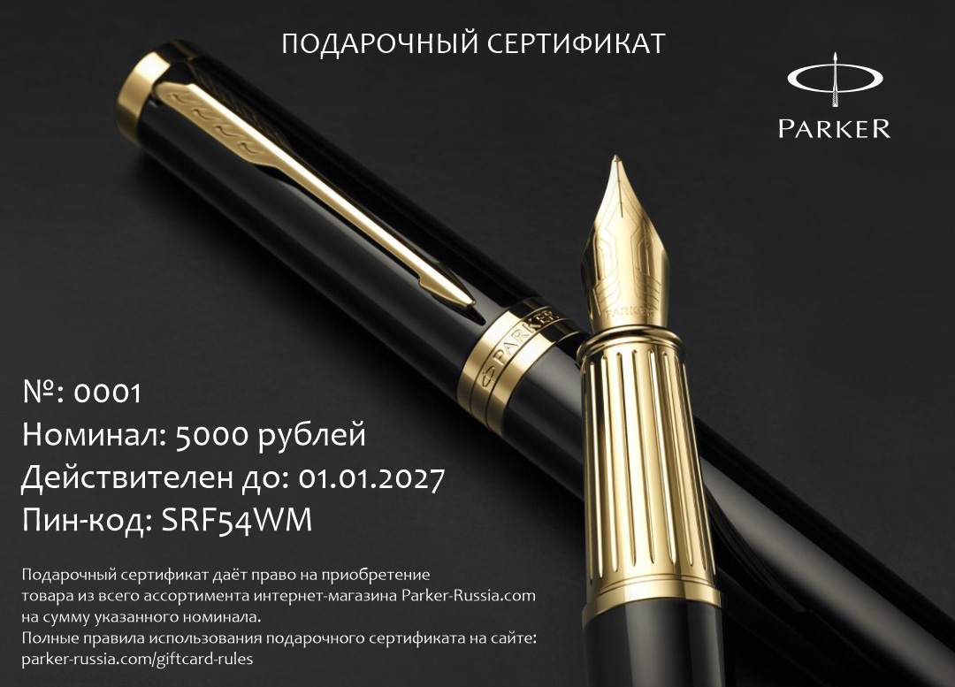 Подарочный сертификат Parker 7000 от официального дилера Parker в Орле. Вы можете дополнительно заказать гравировку, которая подчеркнет Вашу оригинальность и придаст памятность статусному подарку. Все ручки Паркер поставляются в фирменном футляре.