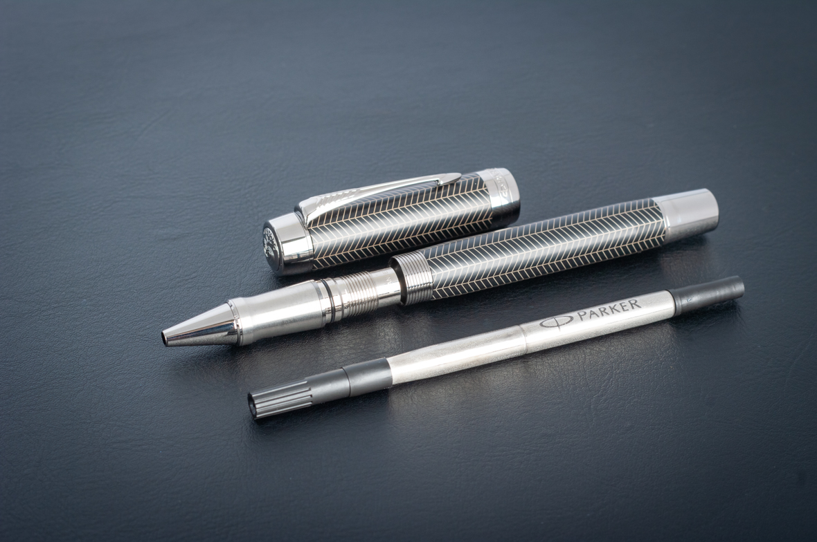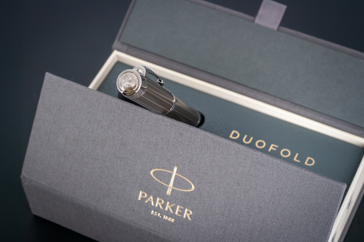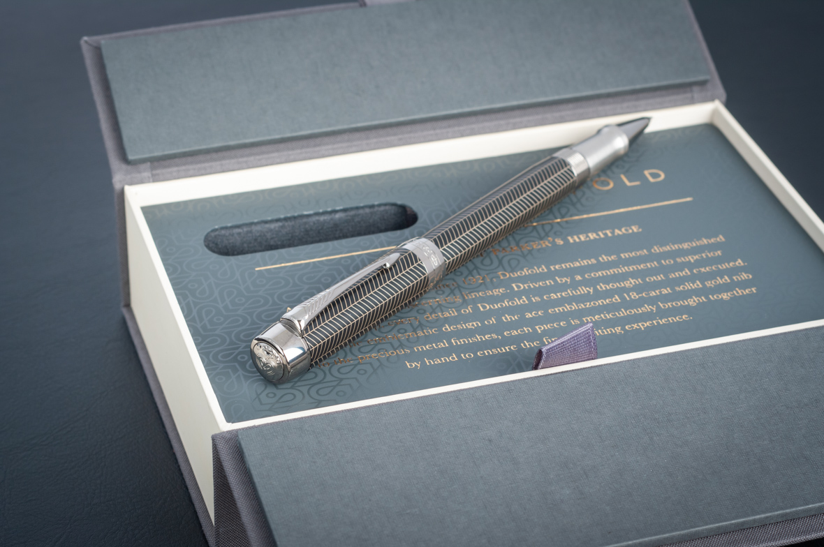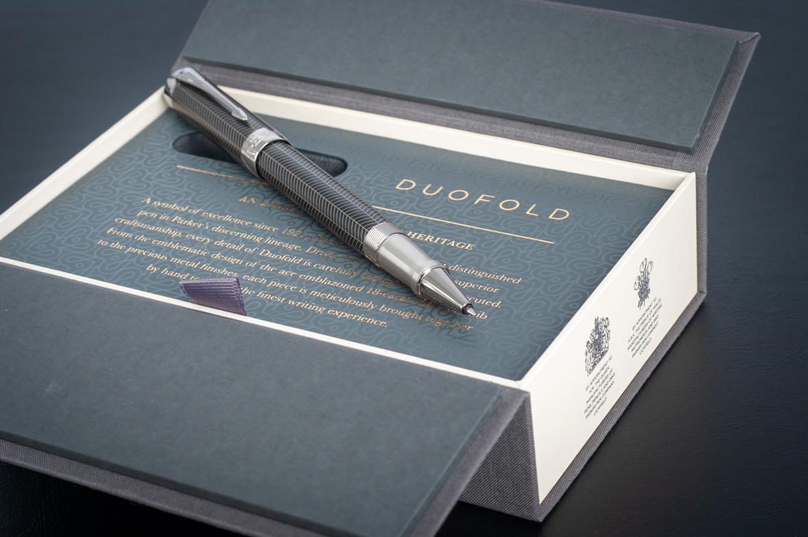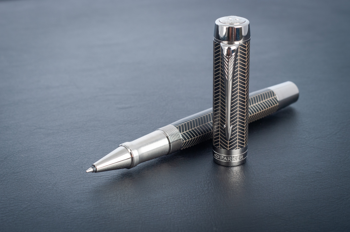 Ручка роллер Parker Duofold Prestige Centennial Black Chevron CT от официального дилера Parker в Орле. Вы можете дополнительно заказать гравировку, которая подчеркнет Вашу оригинальность и придаст памятность статусному подарку. Все ручки Паркер поставляются в фирменном футляре.
