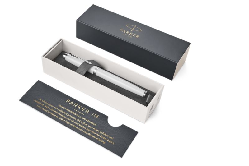 Ручка роллер Parker IM Metal White CT от официального дилера Parker в Орле. Вы можете дополнительно заказать гравировку, которая подчеркнет Вашу оригинальность и придаст памятность статусному подарку. Все ручки Паркер поставляются в фирменном футляре.